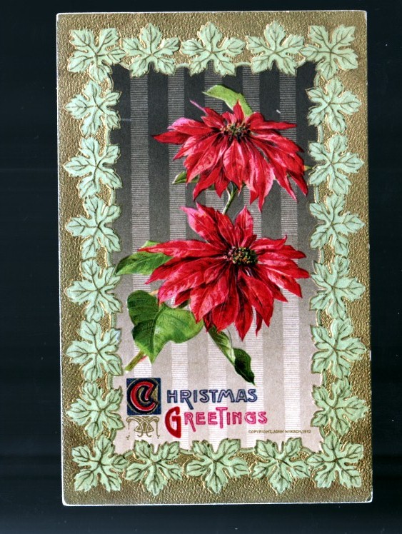 1910 Christmas Flowers Embossed Picture Postcard!
