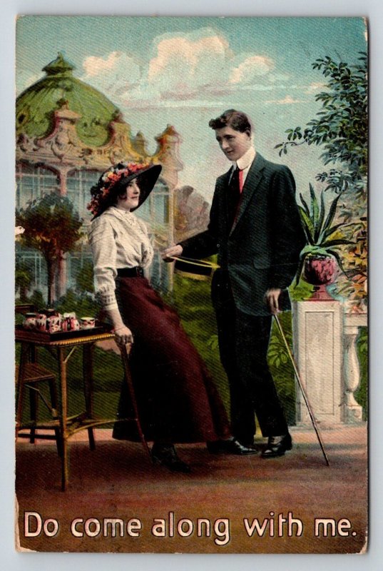 1910 Do Come Along With Me Romantic Couple Love Postcard