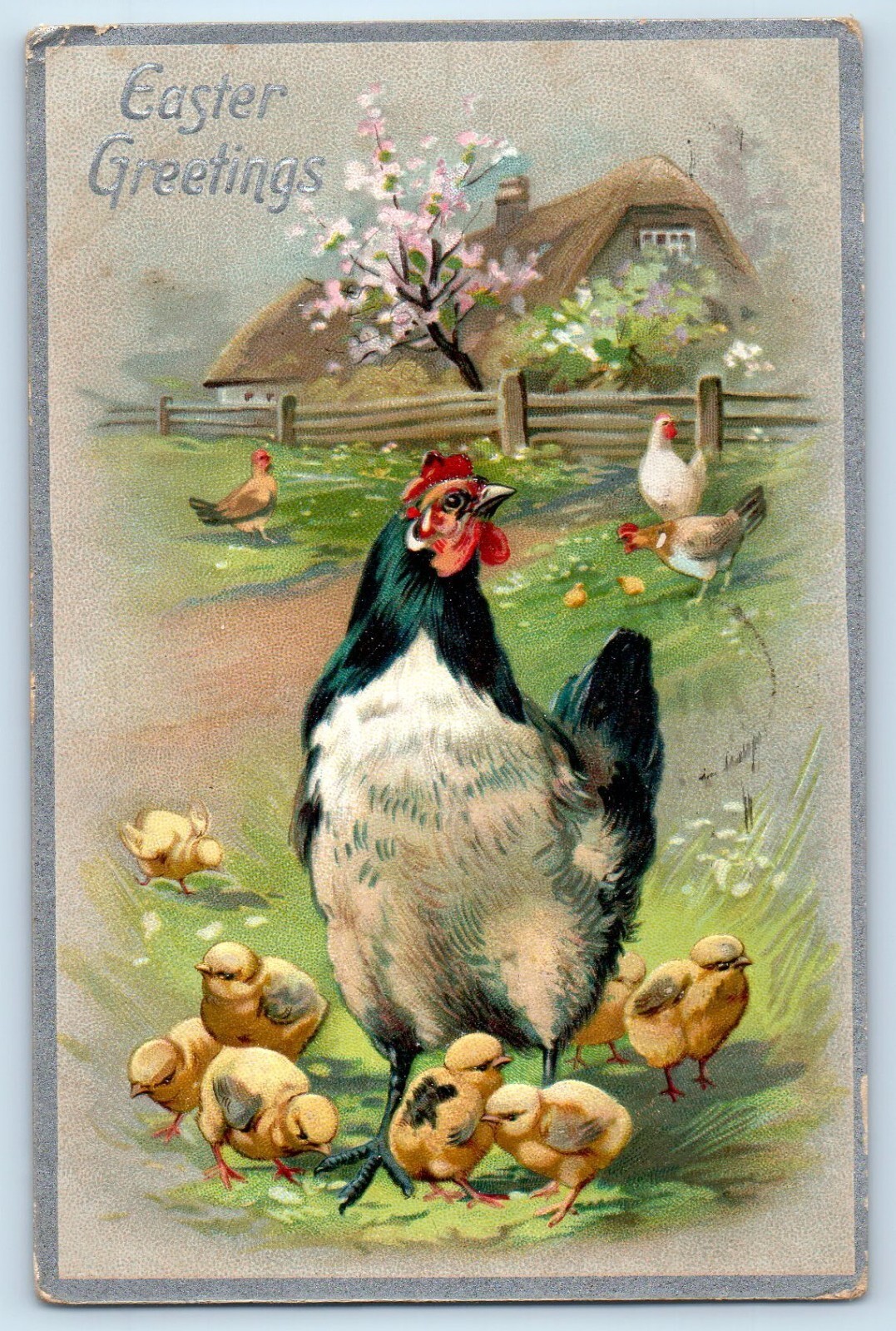 1910 Easter Greetings Chicken Hen And Chicks Embossed Vancouver BC Postcard