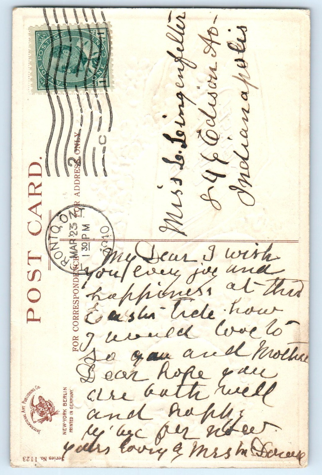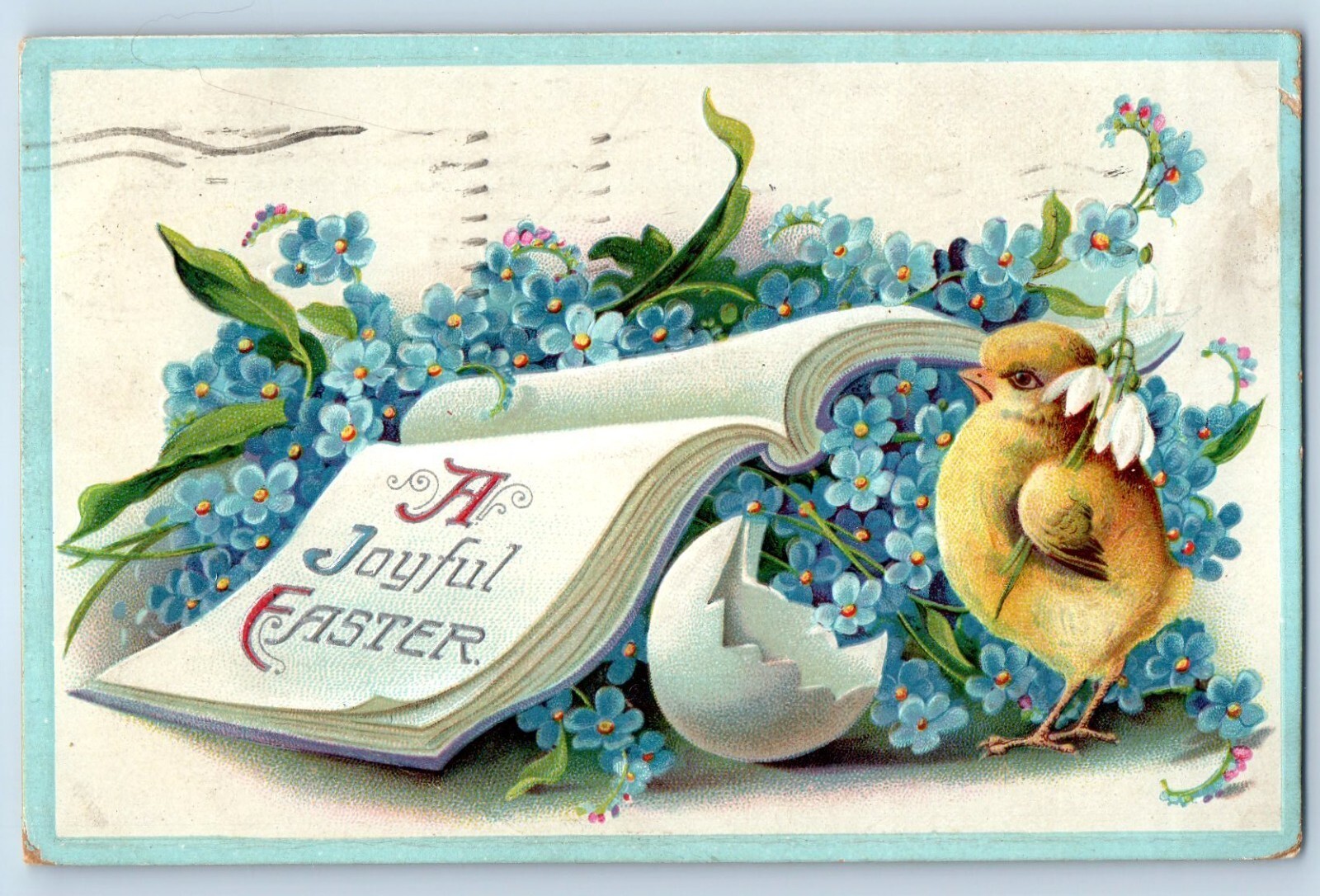 1910 Easter Hatched Egg Chick Blue Flowers Clapsaddle Toronto Canada Postcard