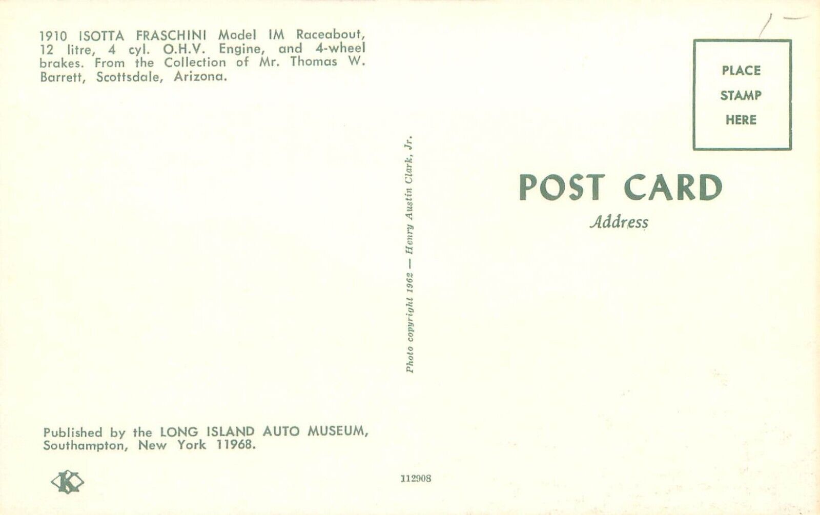 1910 Isotta Fraschini Model M Raceabout Vintage Chrome PostcardShips fast.
