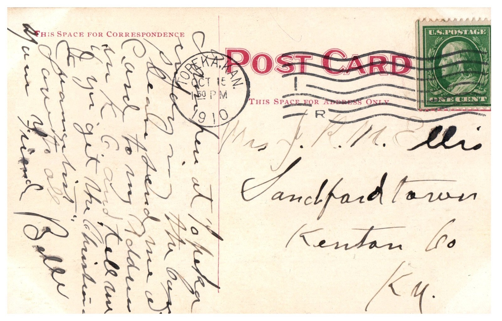 1910 Kansas State Capitol Topeka Vintage Postcard Postmarked USA