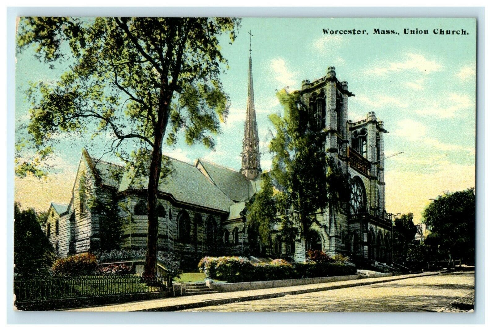1910 Union Church Scene, Worcester, Massachusetts MA Antique Postcard