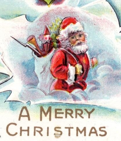 1910's CHILDREN UNWRAP SANTA CLAUS MERRY CHRISTMAS EMBOSSED ANTIQUE POSTCARD