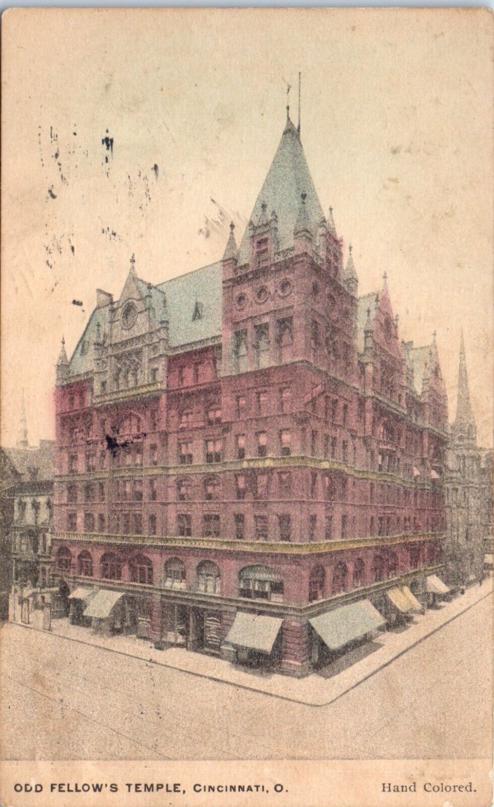 1910s Odd Fellows Temple Cincinnati OH Hand Colored Postcard