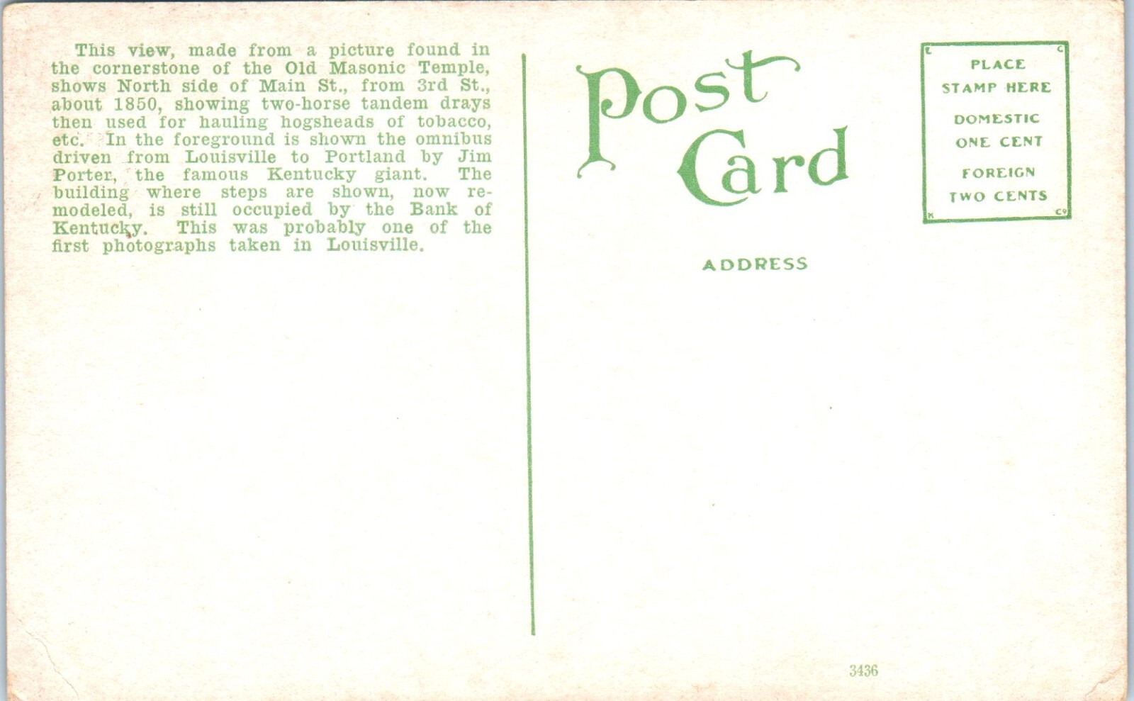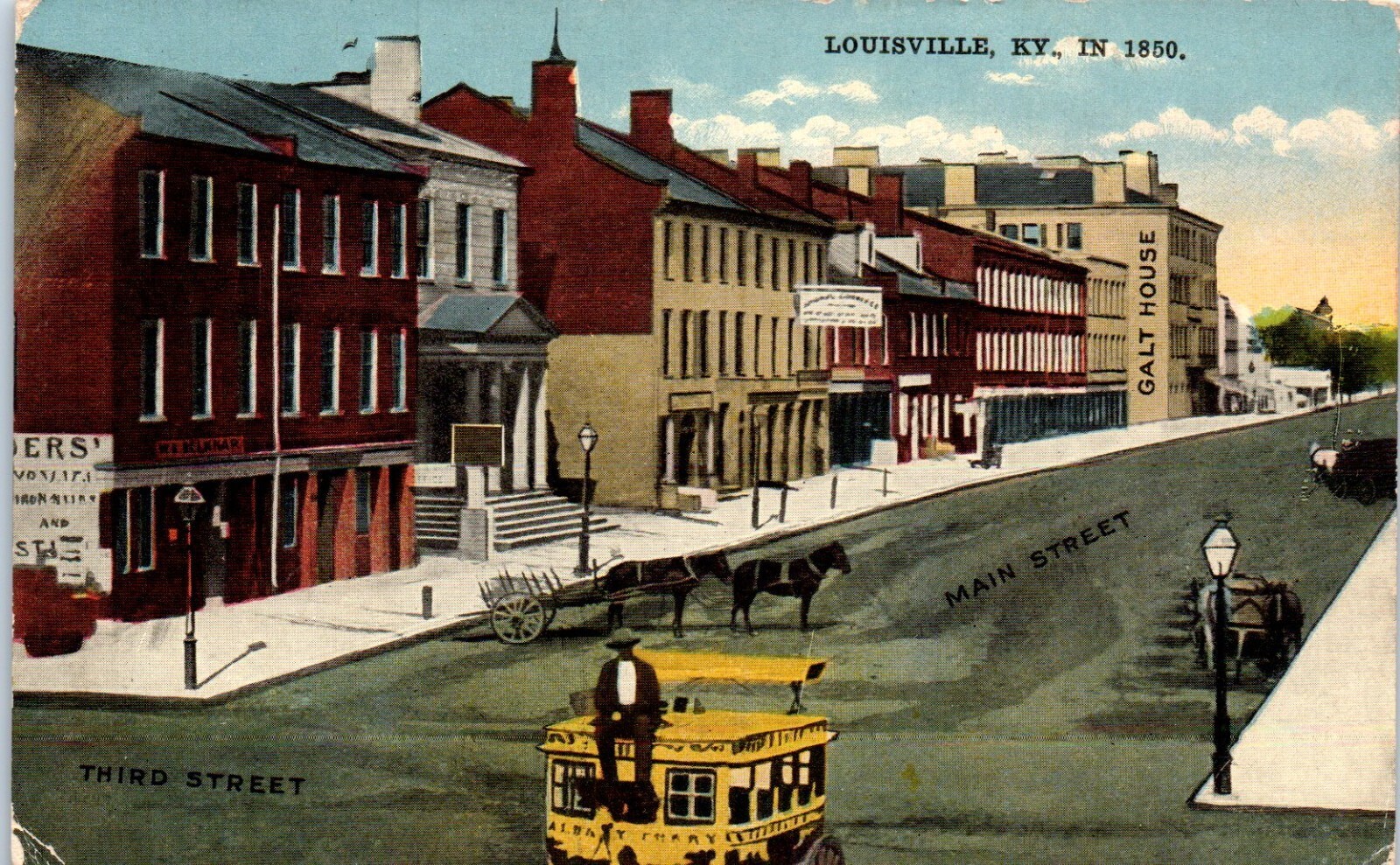 1910s Third and Main Street Louisville KY Horse & Buggy Postcard