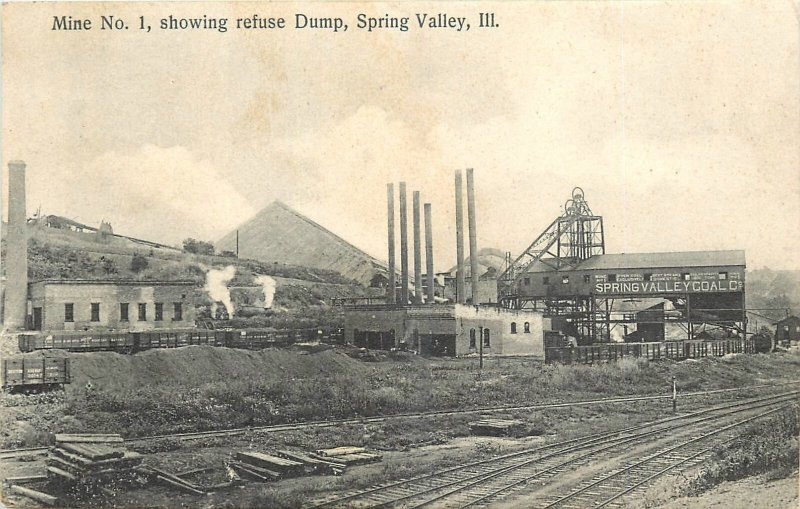1911 Spring Valley Illinois Mine #1 Refuse Dump Mining Postcard 25-12061