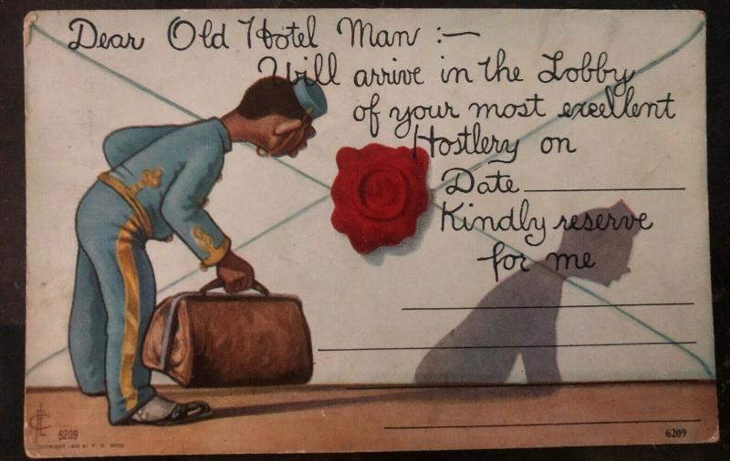 1911 Van Lear USA Postcard Cover Black Americana Dear Old Hotel Man