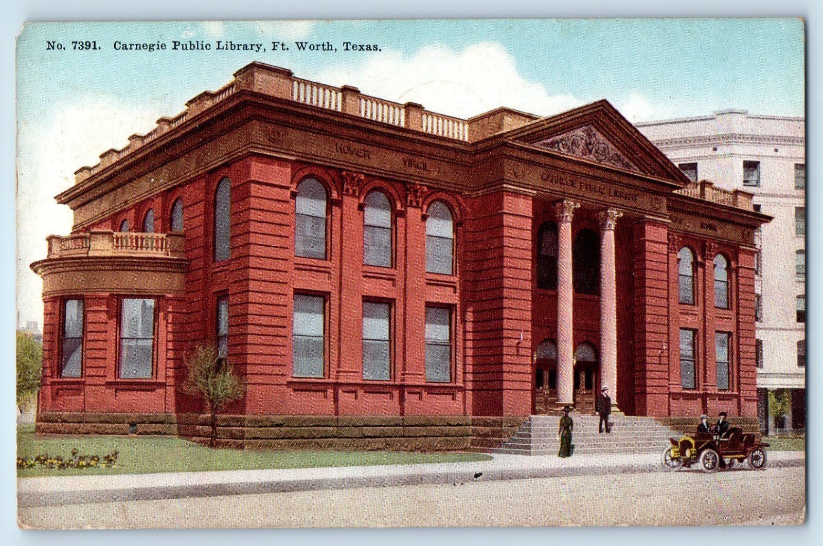 1912 Forth Worth Texas Vintage Postcard Carnegie Public Library Building Posted