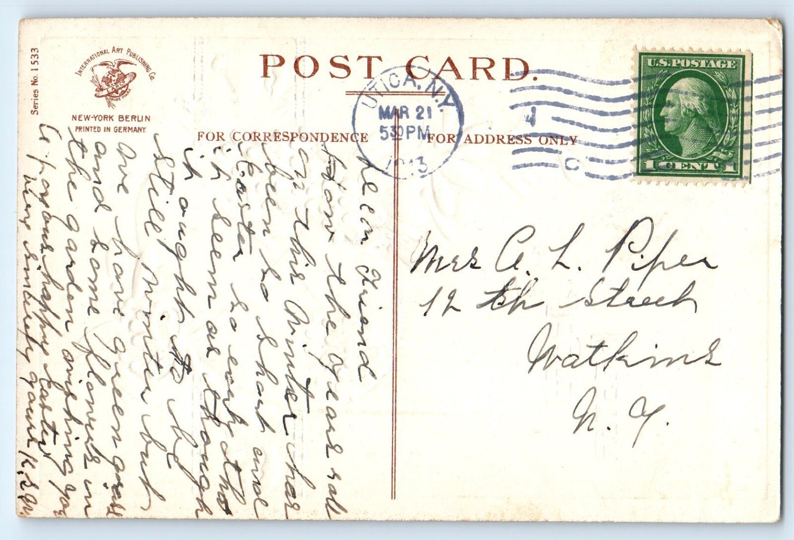 1913 Easter Egg Flowers Little Chicks Embossed Clapsaddle Utica NY Postcard