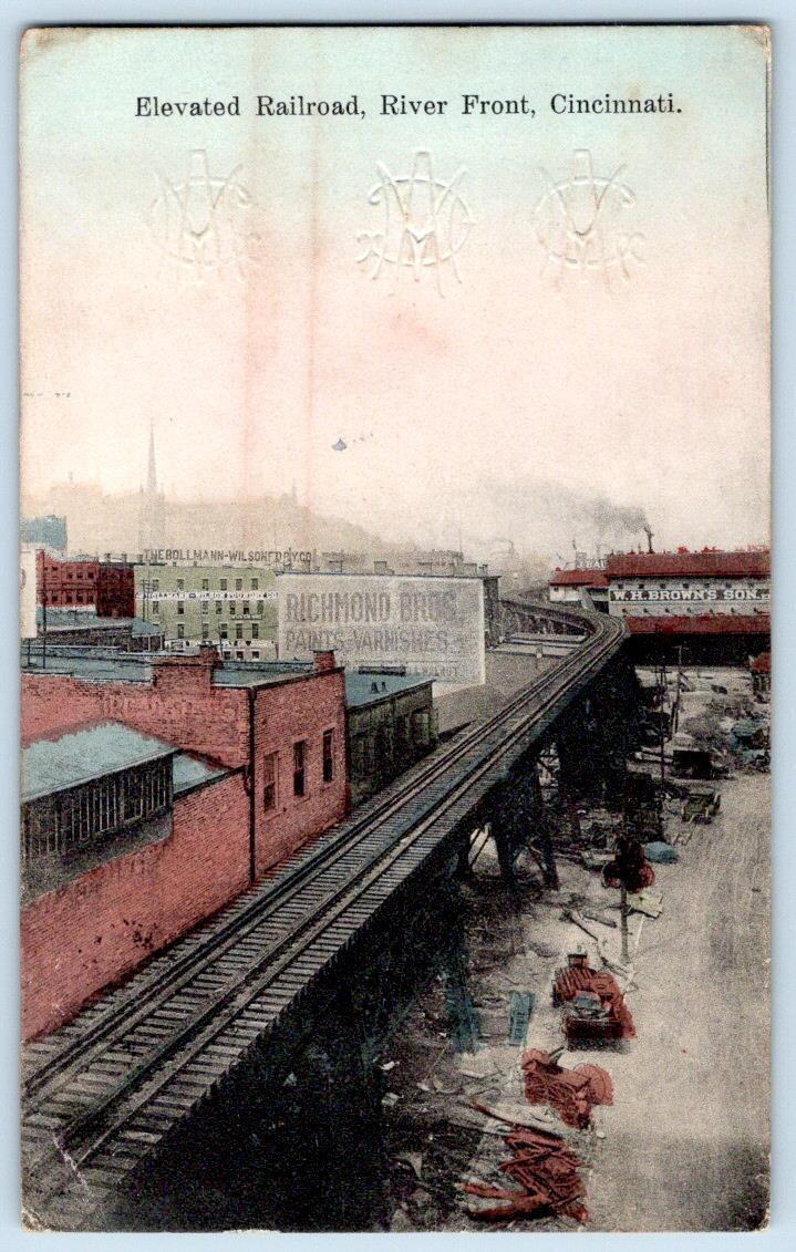 1913 ELEVATED RAILWAY RAILROAD CINCINNATI OHIO POSTCARD***3 EMBOSSED MONOGRAMS**