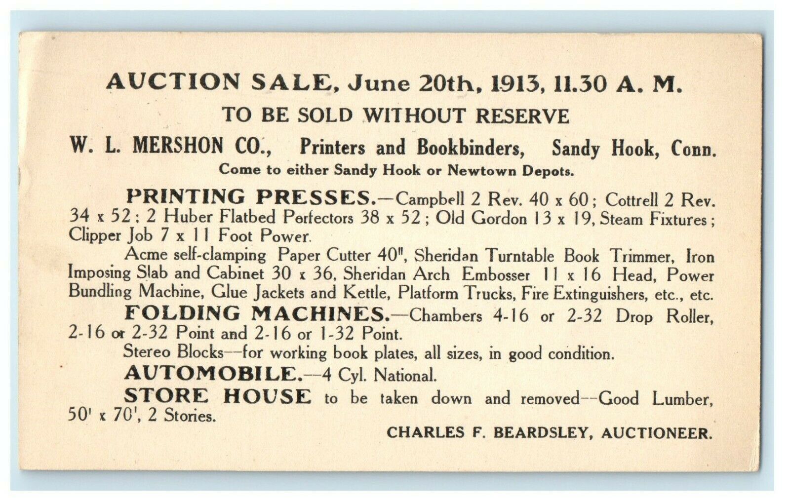1913 Printing Machine Auction Advertising Sandy Hook Connecticut CT Postcard