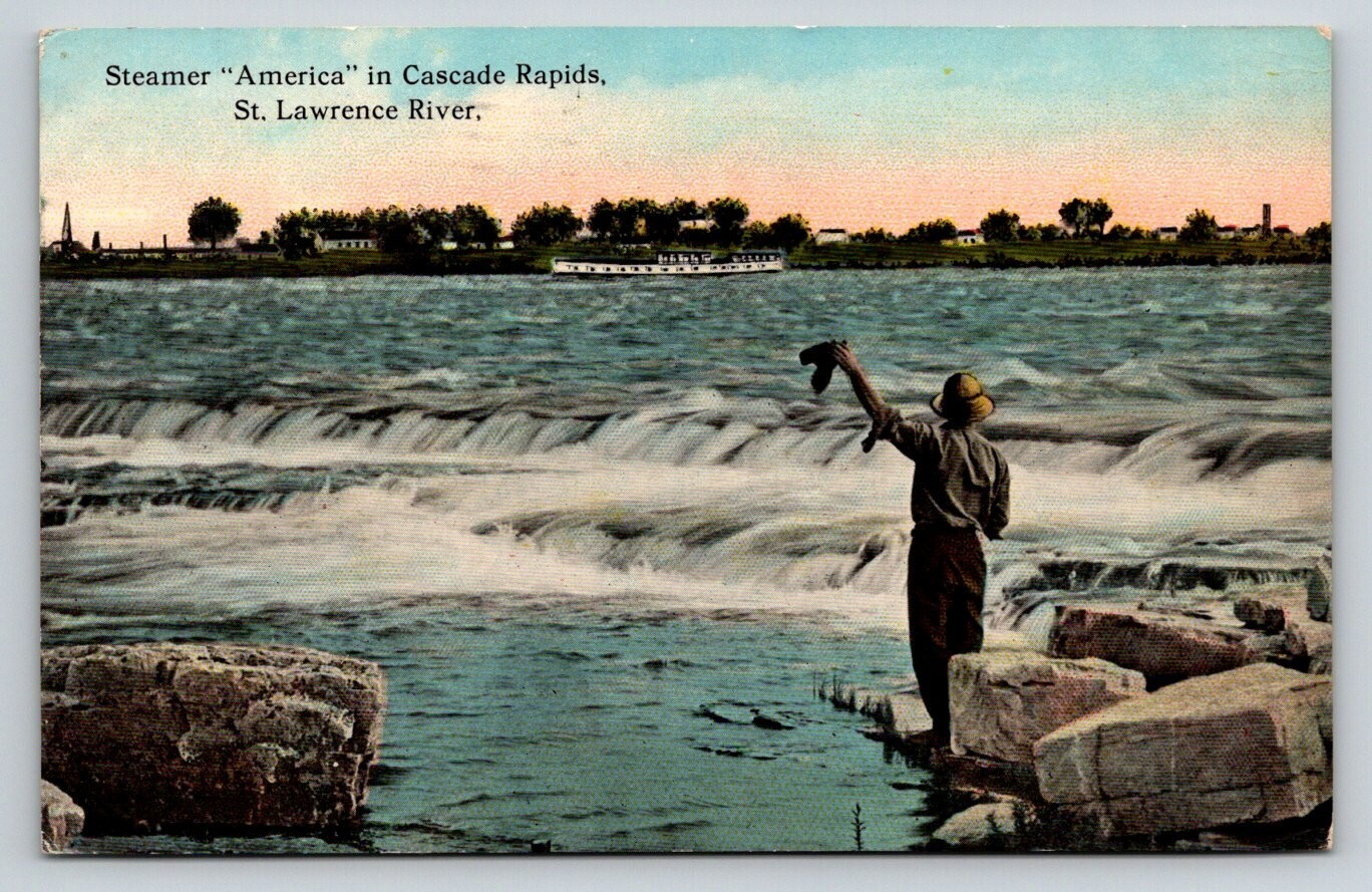 1913 Steamer "America" Cascade Rapids St. Lawrence River Postcard