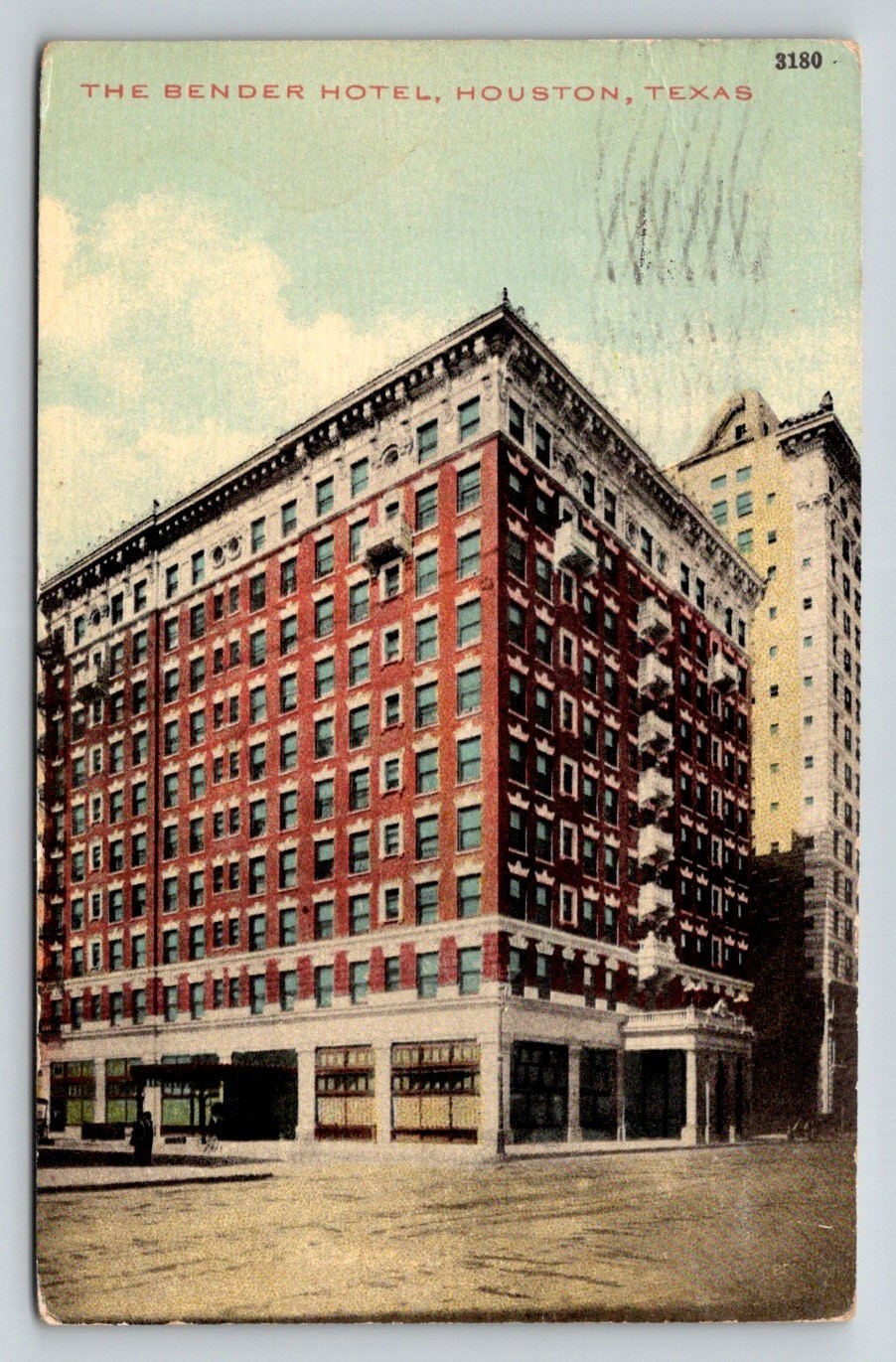 1913 The Bender Hotel Houston Texas Postcard