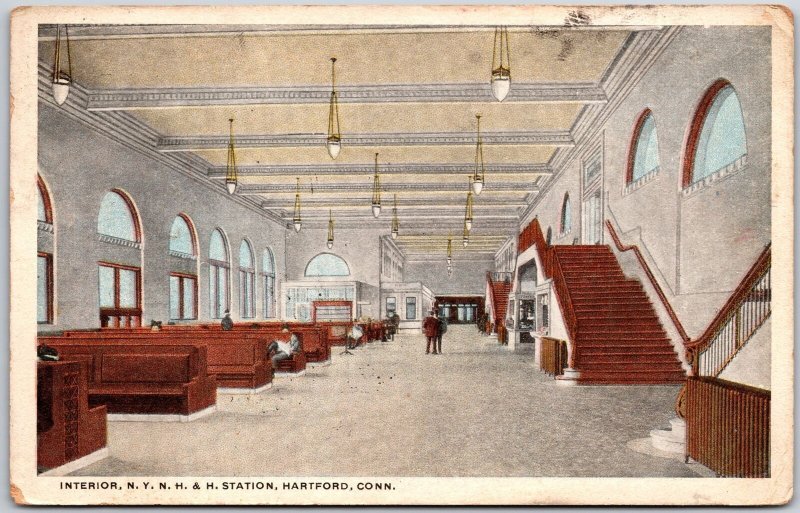 1916 Interior N. Y. N. H. & H. Station Hartford Connecticut CT Posted Postcard