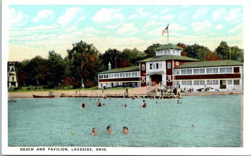 1920s Beach & Pavilion Lakeside Ohio Postcard