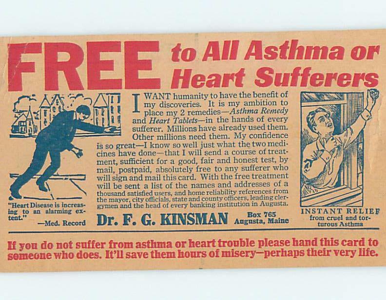 1920's Postcard Ad - Asthma & Heart Problem Cure F0429