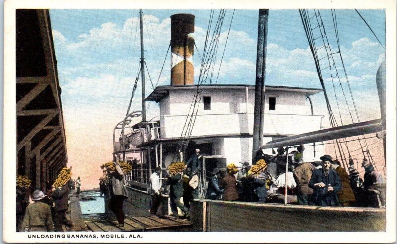 1920s Unloading Bananas Mobile Alabama Steamboat Postcard