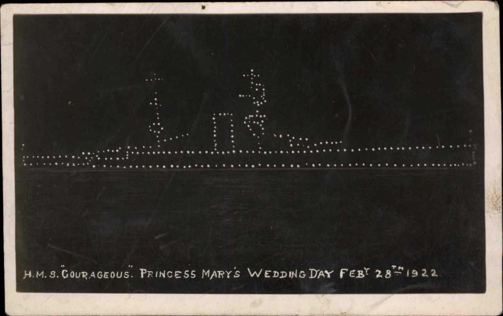 1922 PRINCESS MARY WEDDING DAY HMS Courageous Ship at Night Antique RPPC