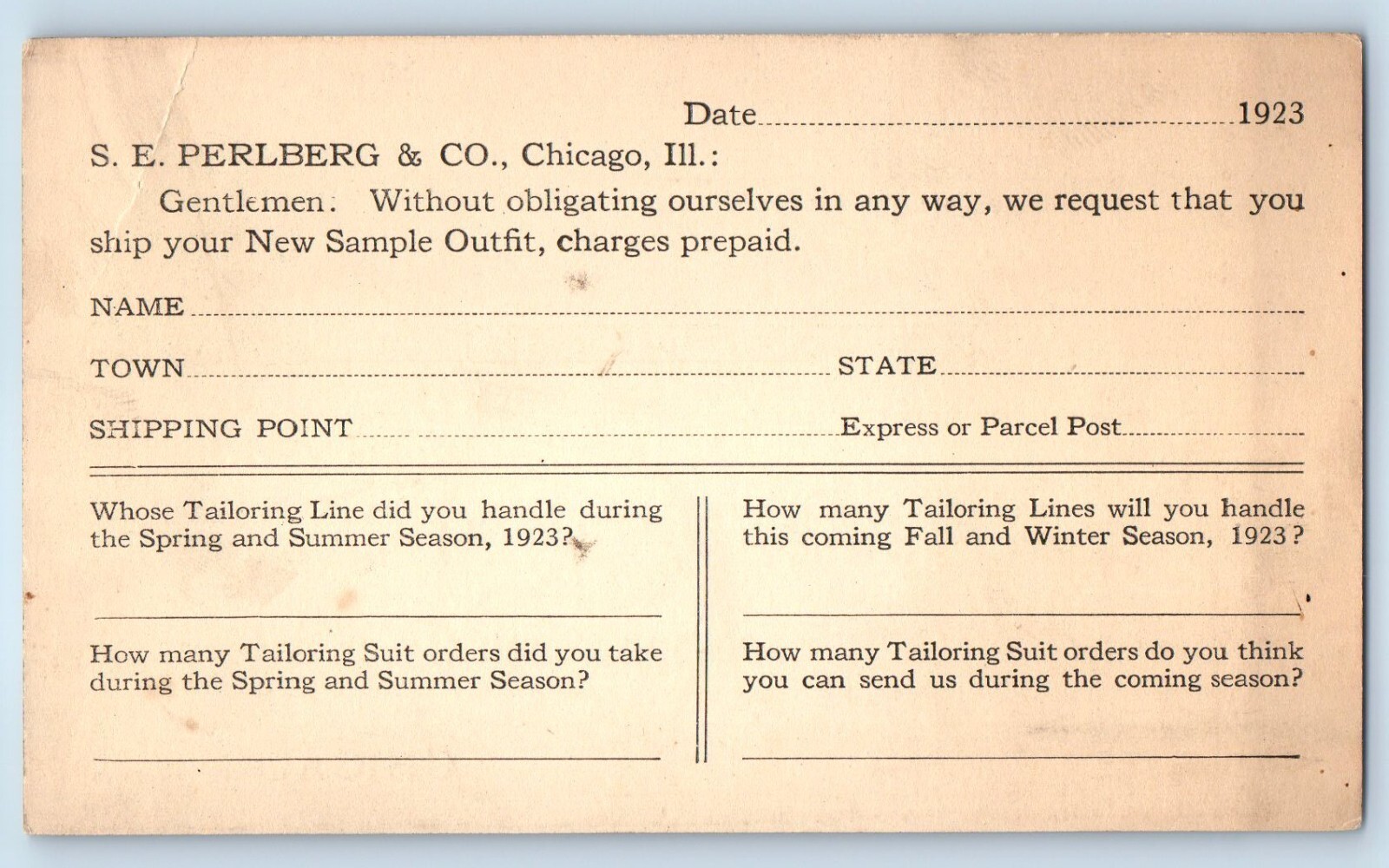 1923 Sample Outfit Request S E Perlberg & Co Chicago IL Advertising Postal Card
