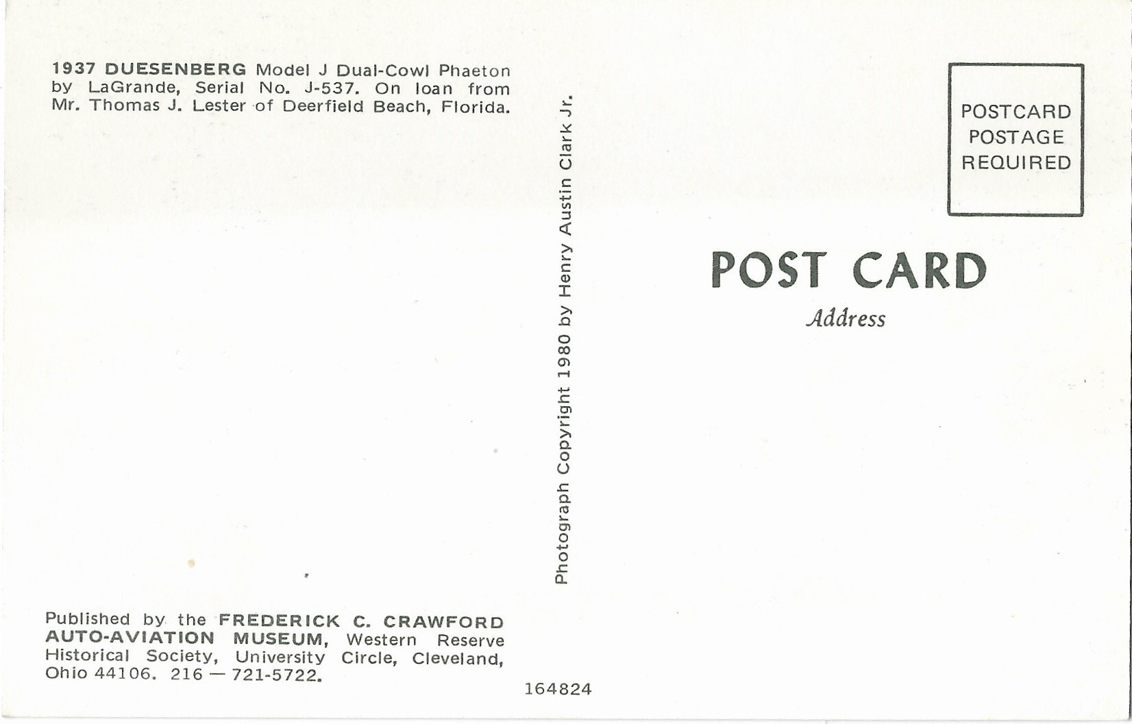1927 Dusenberg Model J Dual-Cowl Phaeton CarSeller Information