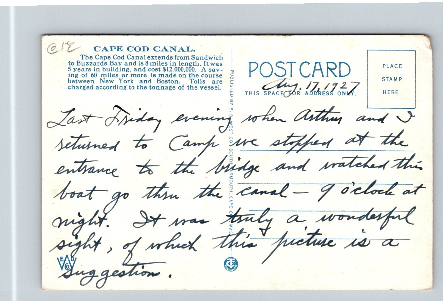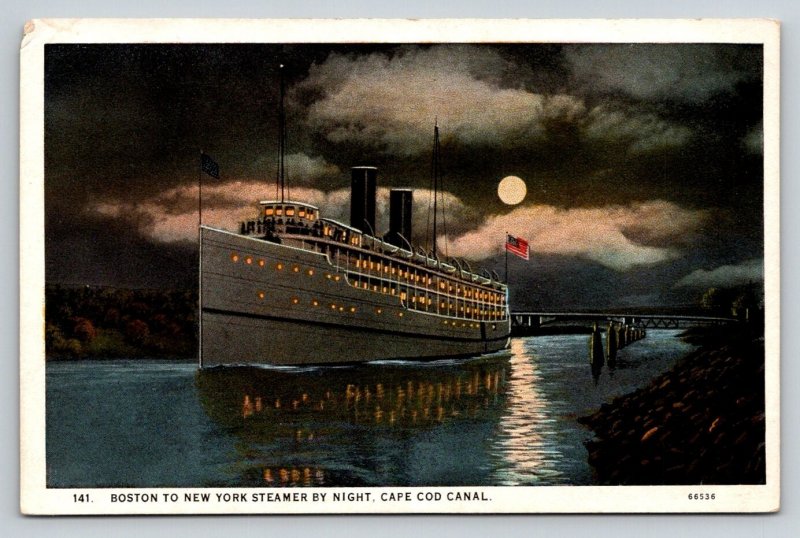 1927 Steamer at Night Cape Cod Canal Massachusetts Postcard