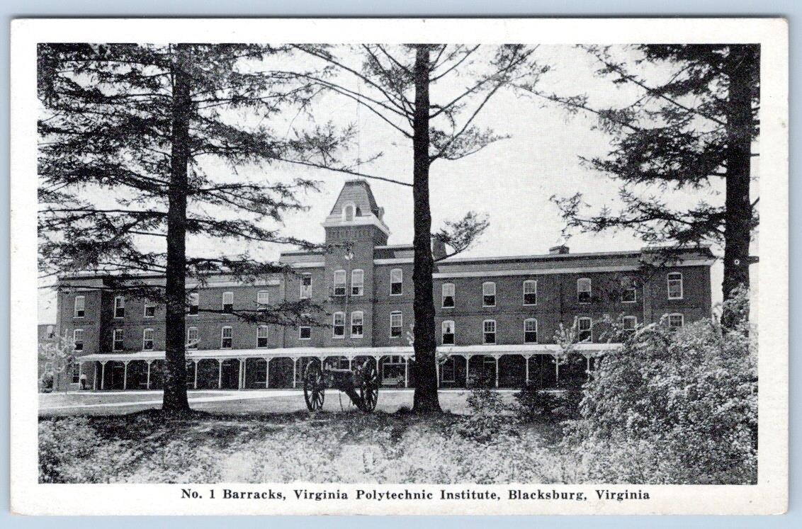 1930-40's NO.1 BARRACKS VIRGINIA POLYTECHNIC INSTITUTE BLACKSBURG POSTCARD