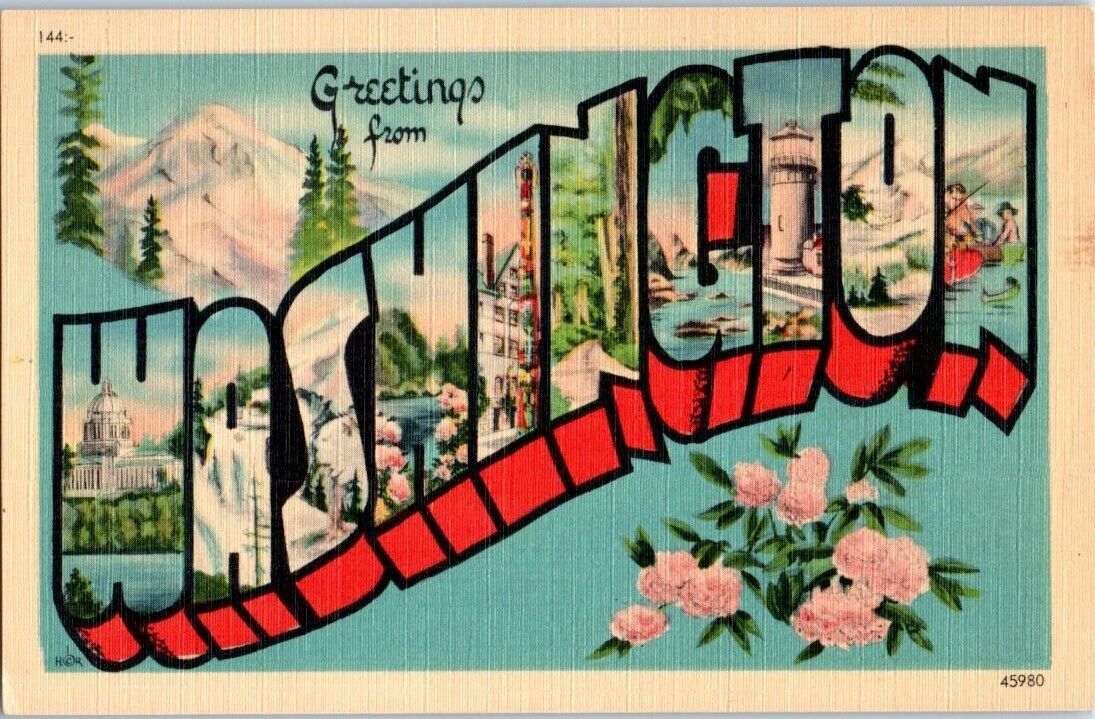 1930s Large Letter Greetings from Washington Postcard
