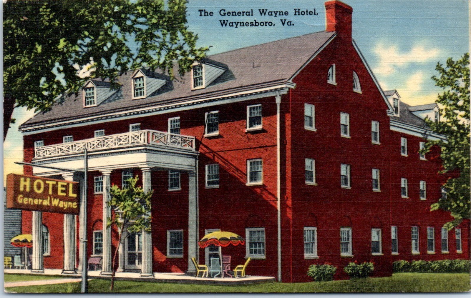 1930s The General Wayne Hotel Waynesboro VA Postcard