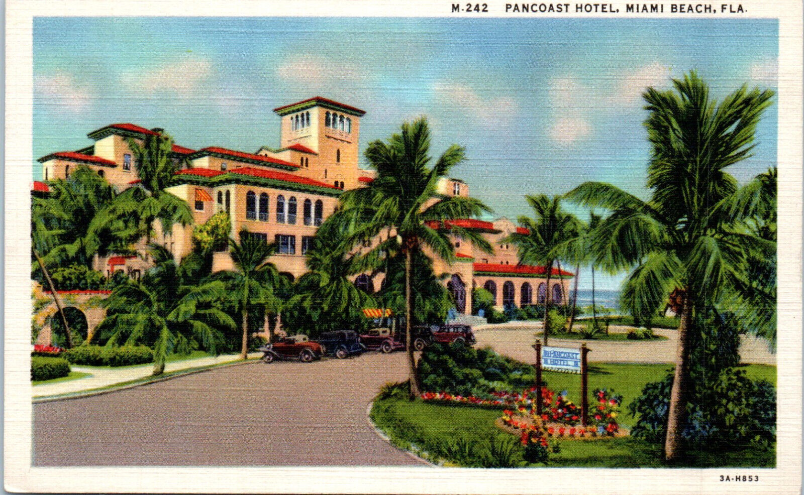 1933 Pancoast Hotel Miami Beach FL Linen Postcard