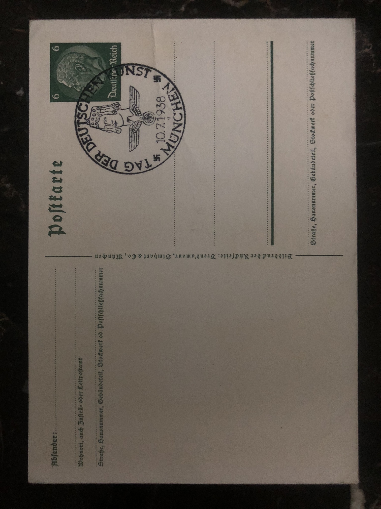 1938 Munich Germany picture Postcard Propaganda cover German Art festival b