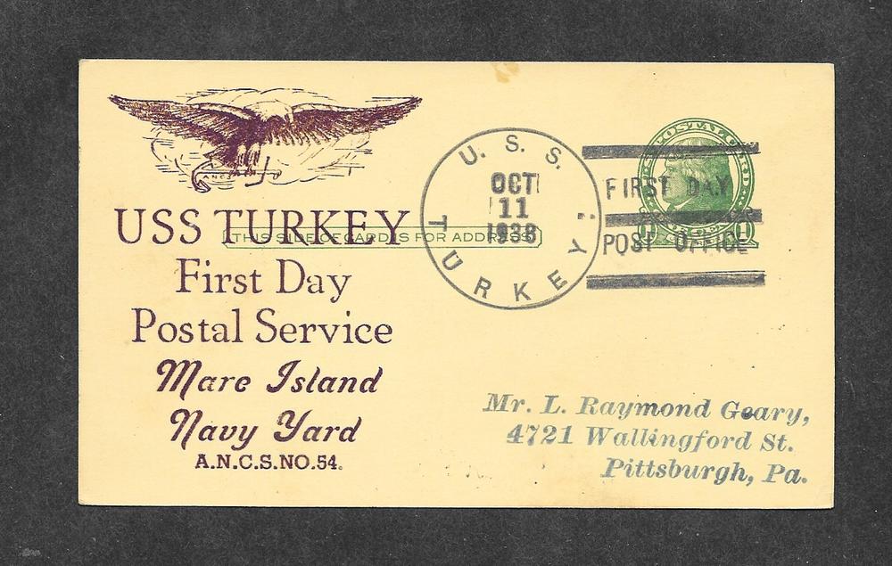 1938 Postcard USS Turkey!