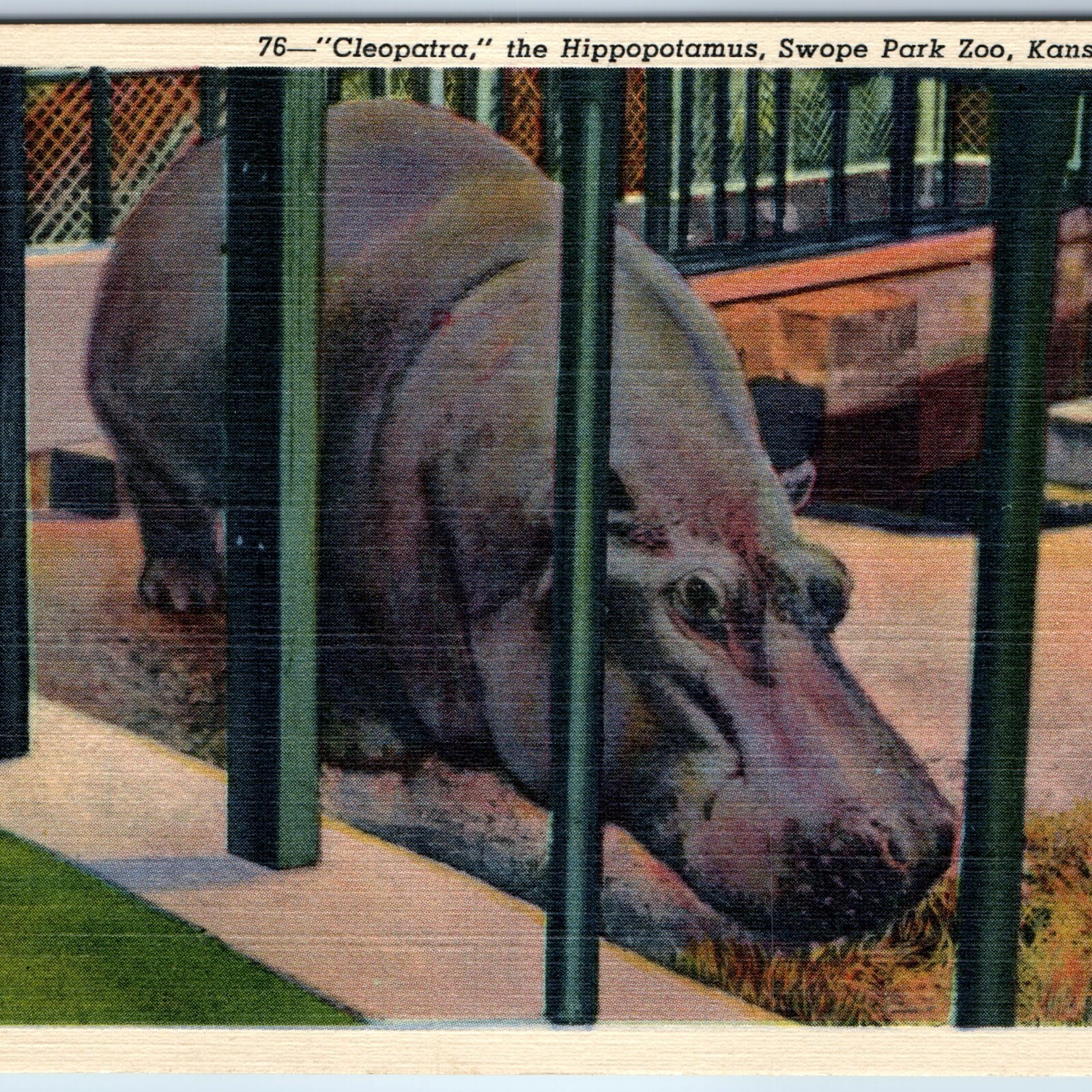 1939 Kansas City KS Cleopatra Princess Cute Hippo Swope Zoo PC Hippopotamus A248