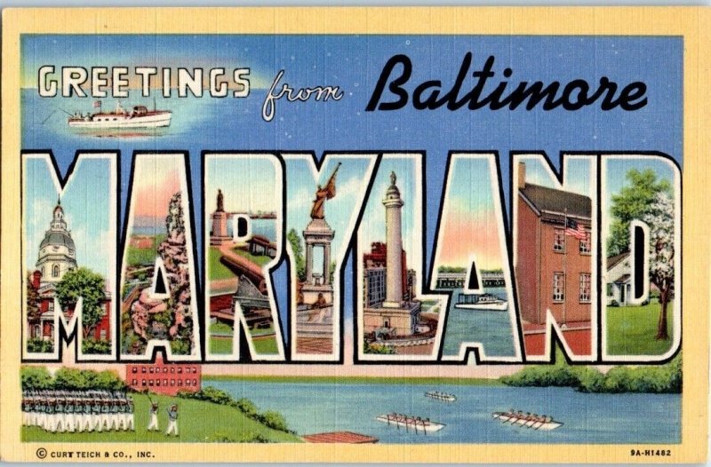 1939 Large Letter Greetings from Baltimore MD Postcard
