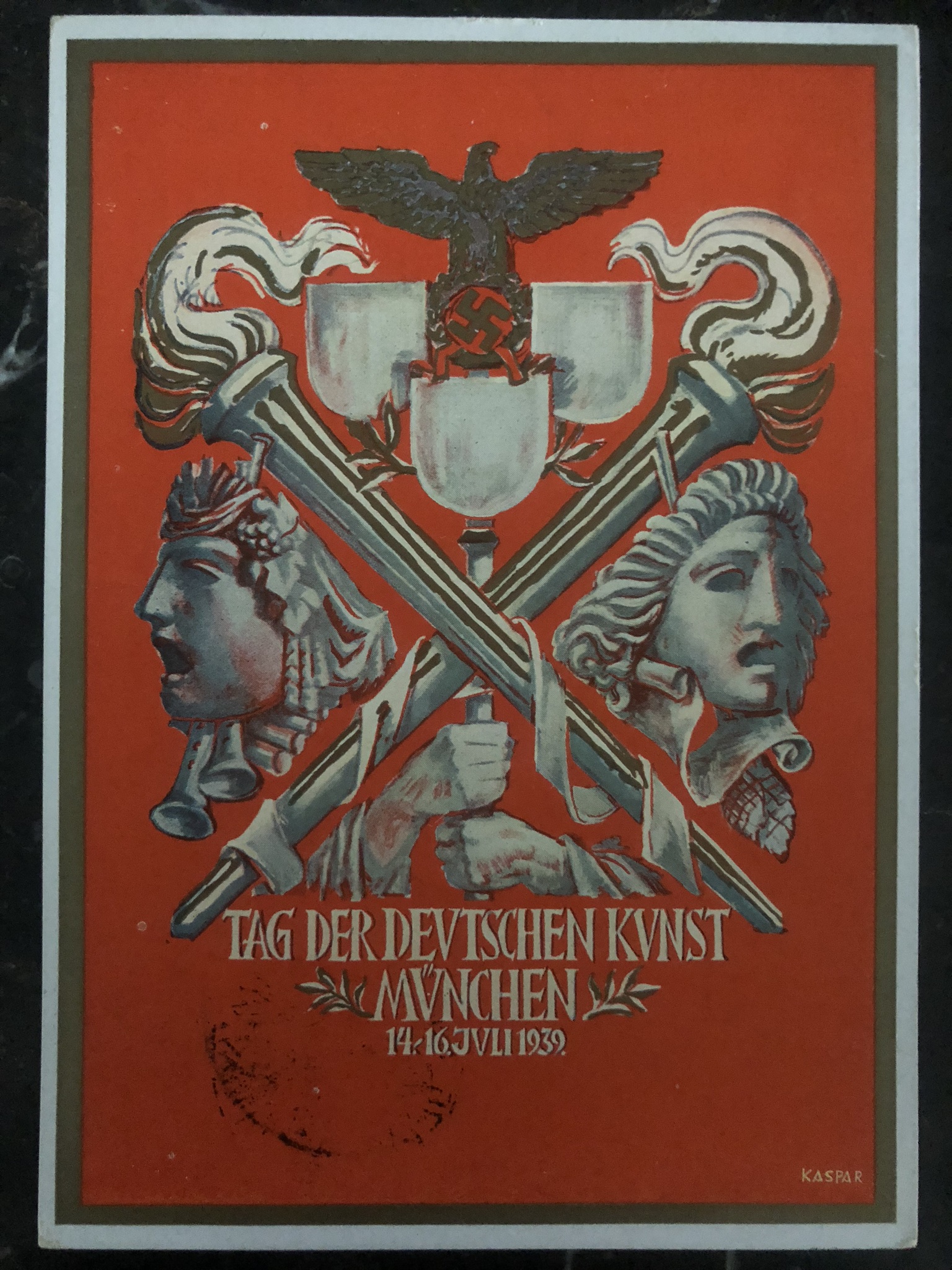Up for auction is a beautiful picture postcard Propaganda cover PPC , From Munich Germany . Postcard Depicts the day of german art Festival. In excellent condition . Priced to sell . Postmarked july 15, 1939 .Nice stamps Marks & cancels.Shipping