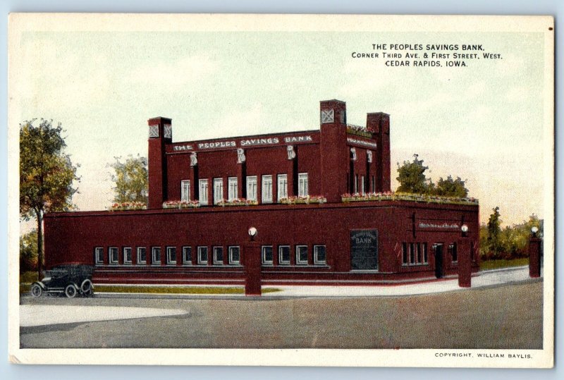 1940 Cedar Rapids Iowa Postcard Peoples Savings Bank Corner Third Avenue Street