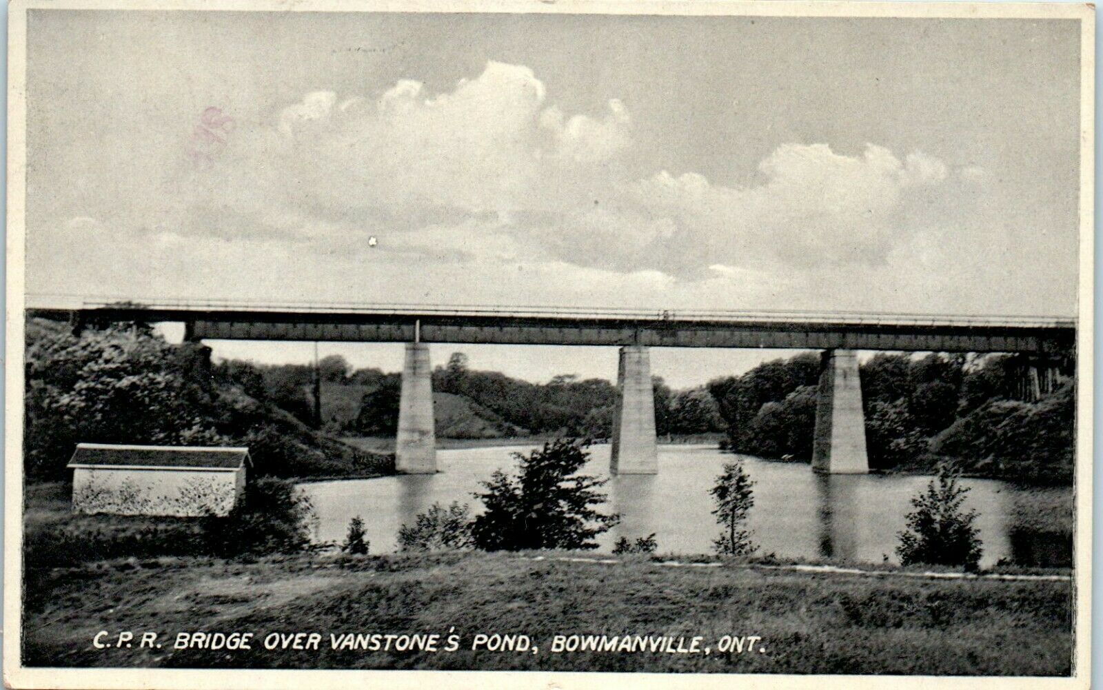 1940 CPR Bridge Over Vanstone's Pond Bowmanville Ontario Canada Postcard