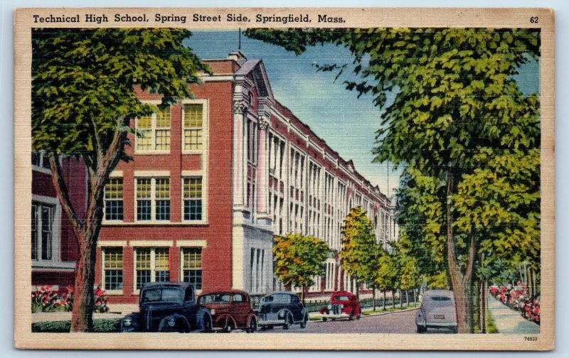 1940 Springfield Massachusetts Postcard Technical High School Spring Street Side