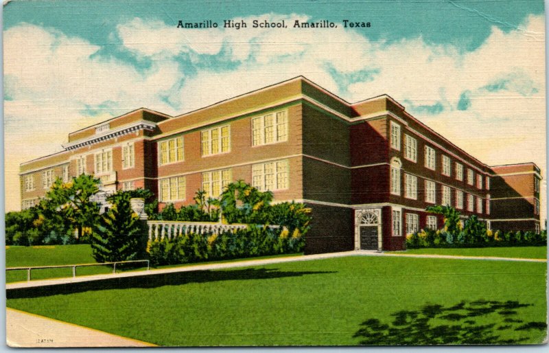 1940s Amarillo High School Amarillo Texas Linen Postcard