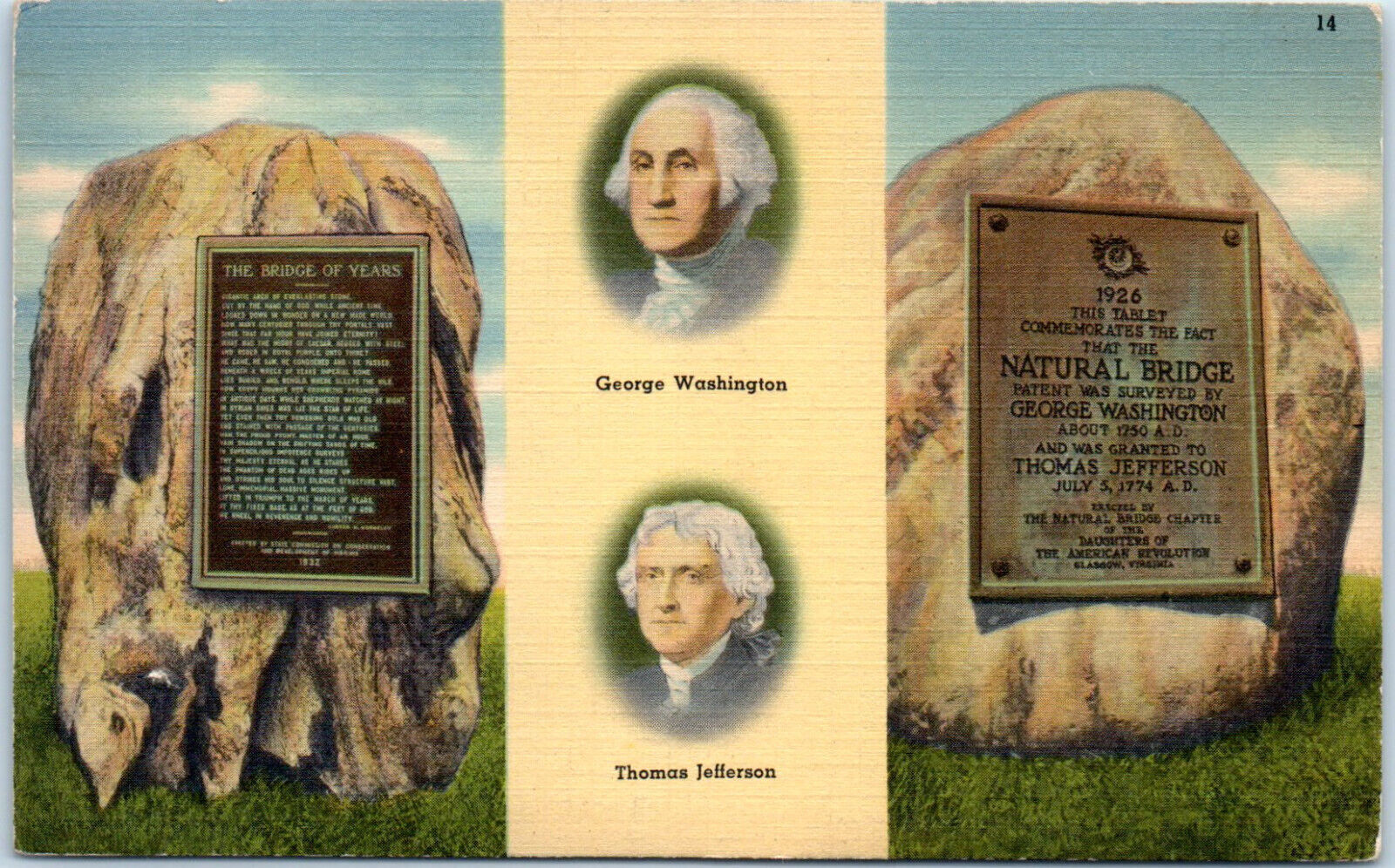 1940s George Washington Thomas Jefferson Natural Bridge Monuments Postcard