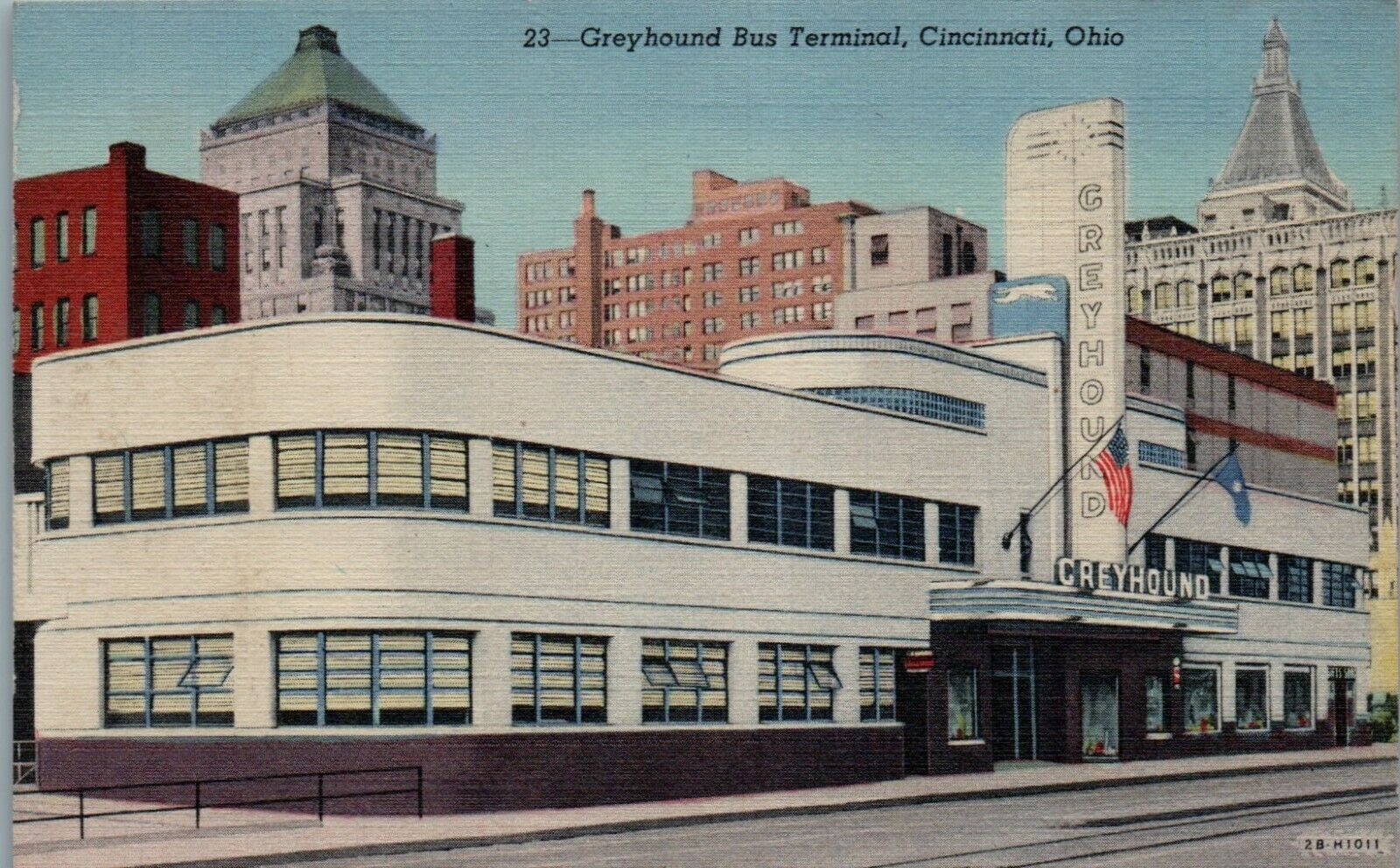 1940s Greyhound Bus Terminal Cincinnati OH Ohio Linen Postcard