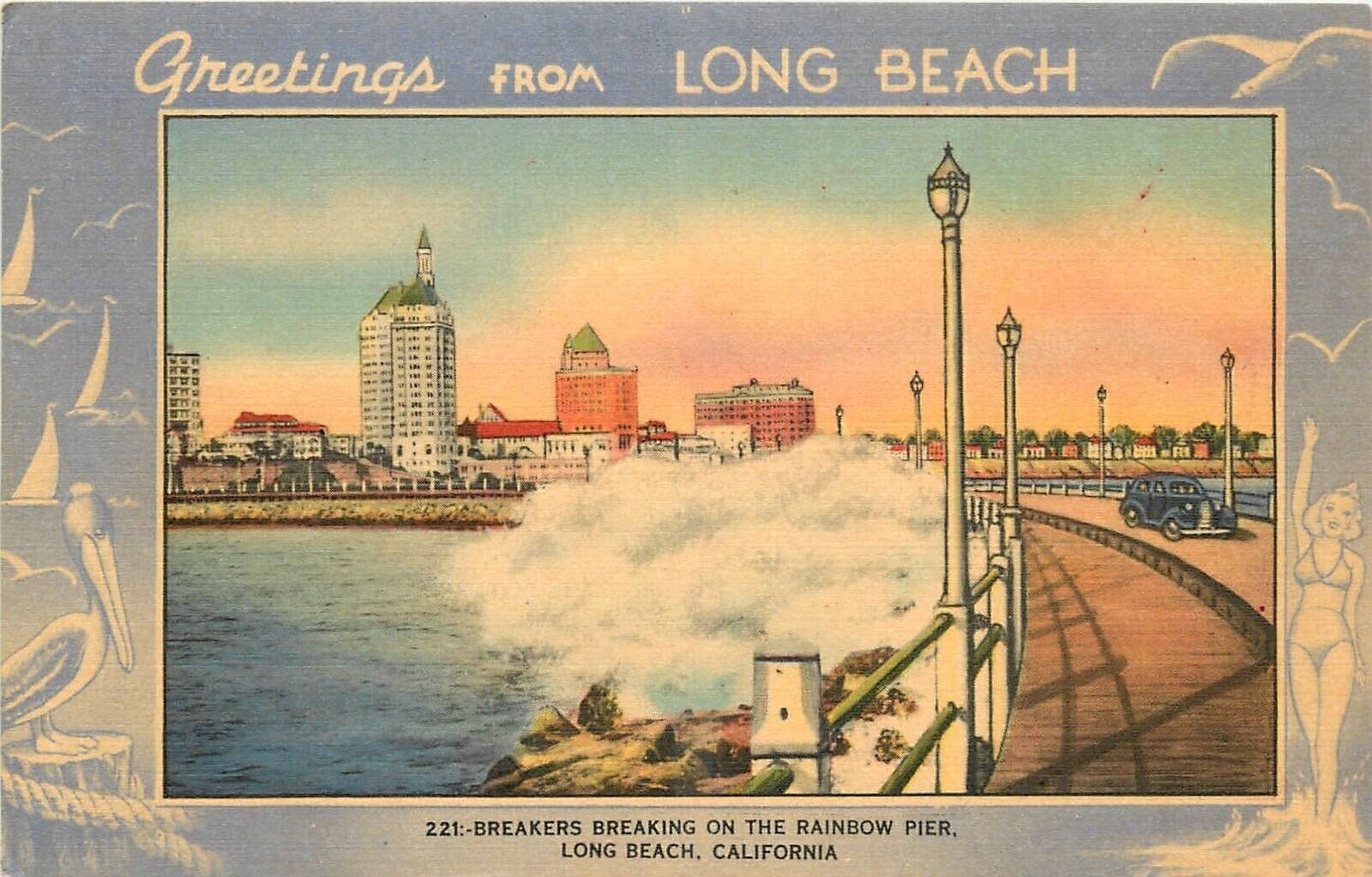 1940s Long Beach California Breakers rainbow Pier Postcard Gardner 24-11706