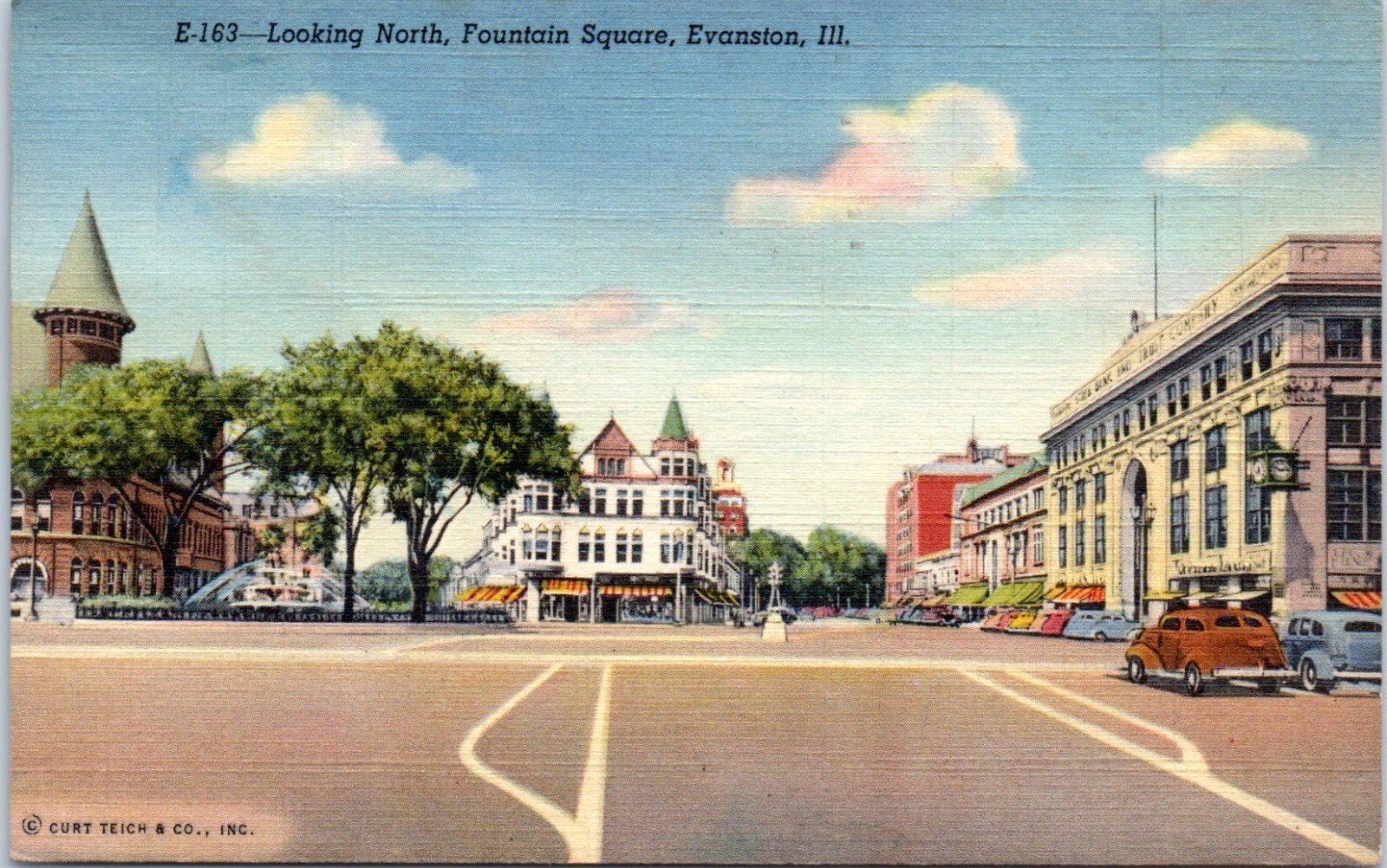 1940s Looking North Fountain Square Evanston Illinois Postcard
