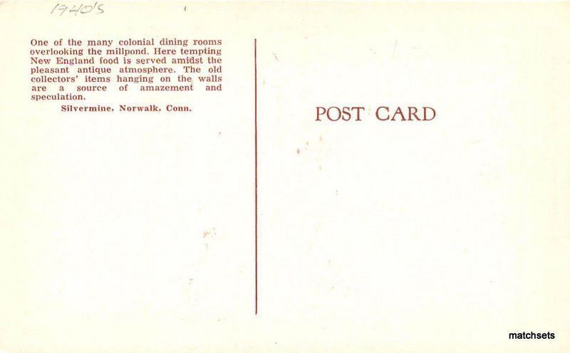 1940s NORWALK CT Silvermine Tavern Interior postcard 3571