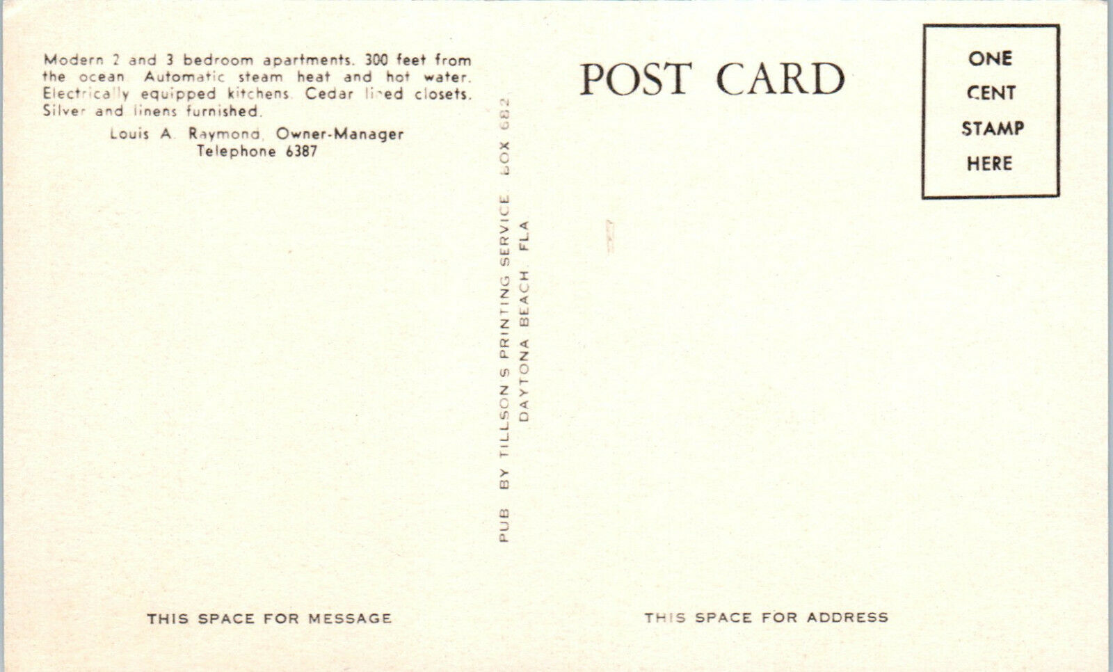 1940s Silver Beach Apartments Daytona Beach FL Postcard