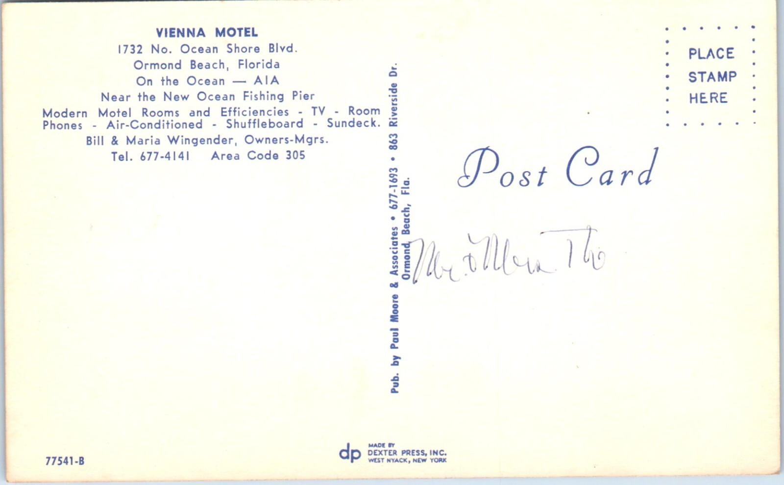 1940's Vienna Motel Ormond Beach Florida Postcard