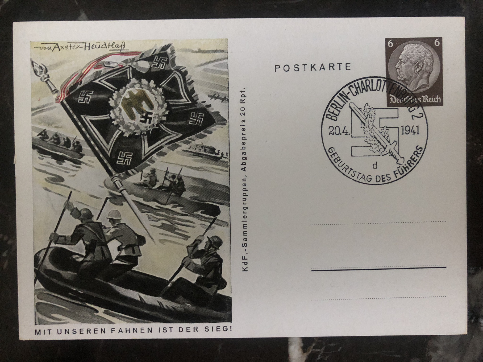 Up for auction is a beautiful Picture postcard cover , From Berlin Germany . Postcard Depicts our flags is the victory. In excellent condition . Nice stamps marks & cancels. Priced to sell .Rare item postmarked in April 4, 1941.Shipping