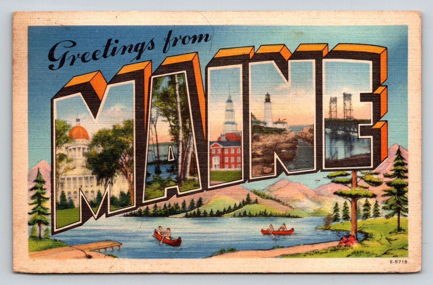 1941 Large Letter Greetings From Maine Postcard