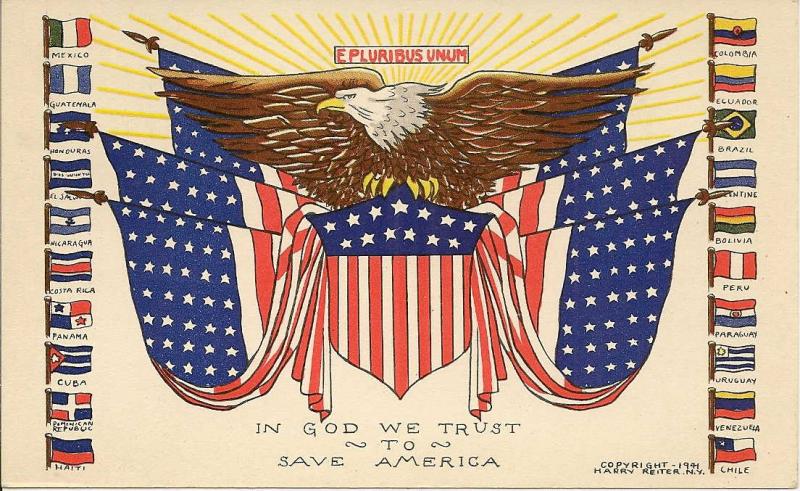 1941 Patriotic WWII Postcard-Eagle & Flag-Unusued