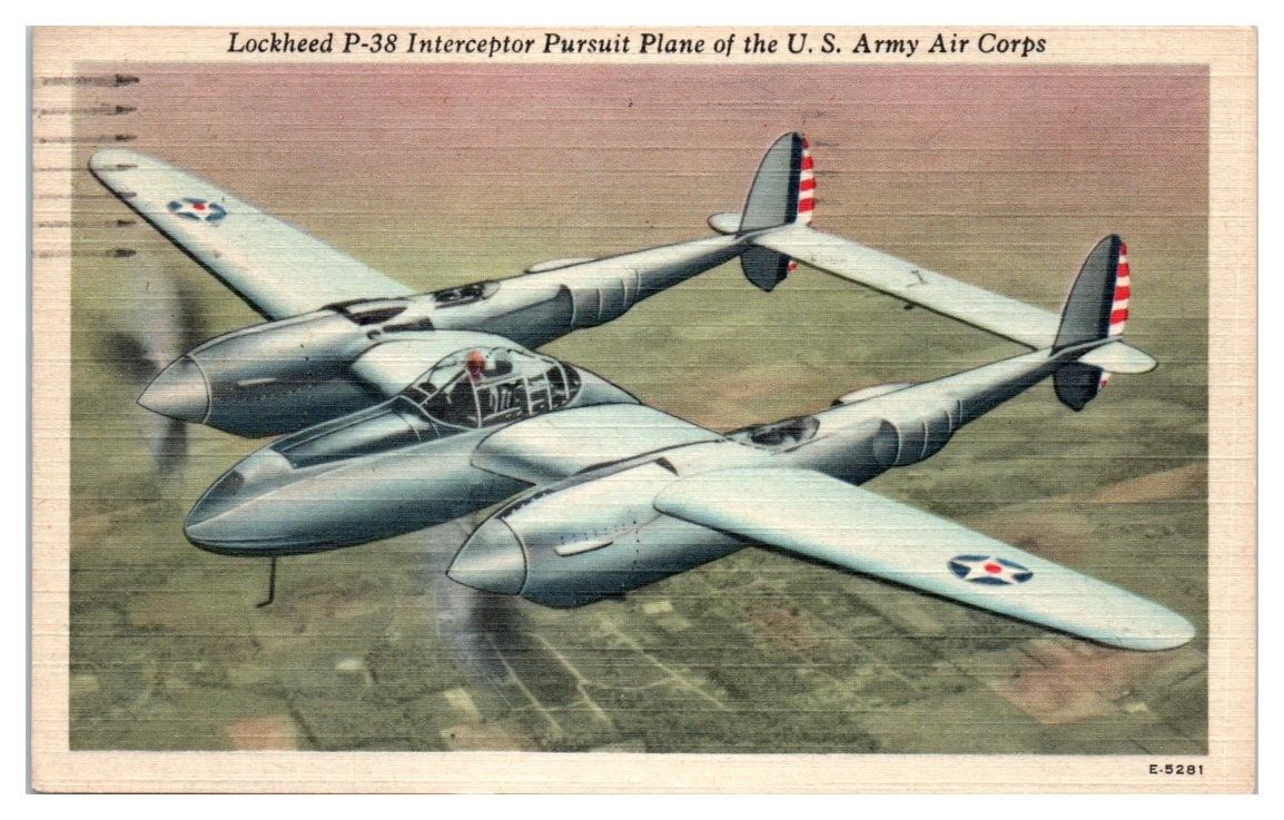 1942 Lockheed P-38 Interceptor, US Army Air Corps Postcard
